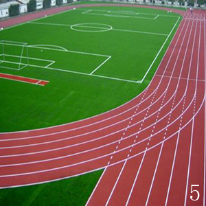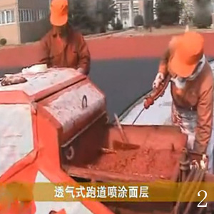 透气型塑胶跑道主要特点:其他同行由塑胶黏合废旧橡胶黑颗粒为底层,而乐邦体育采用出口欧盟儿童玩具材料-彩色直径2-4MM彩色环保颗粒。面层用聚氨酯颗粒与塑胶色浆掺混喷涂。透气型塑胶跑道一般主跑道13mm,颜色可以选择,红色和蓝色,大部分学校采用红色的塑胶跑道。透气型塑胶跑道除具有其它形式的优点外还具有渗水、透气性,也能全天候使用,它是最经济、价格最低廉,而且不会有鼓泡现象发生,同时也减少了地基经费的投入,它适用于建造学校场地铺设。透气型塑胶跑道使用年限可达到6年以上。