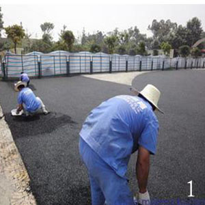 6、施工(手工) :将料按比例混匀后,倒入场地内摊铺,用加热(喷灯加热)或沾皂水后的拍板拍实,拍平接缝,保持整体平整。