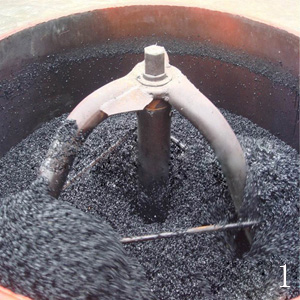 2、采用粒径3-4mm高弹性黑胶粒掺高强度单组份胶水,搅拌均匀倒入摊铺机,铺设厚度为9mm,固化保养24小时。