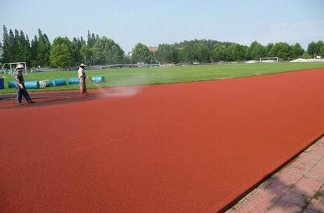 1、按放好的施工线先喷足球场地,用钢钉把塑料布因定在红绿搭接处,防止污染,严格执行原料配比,调整好因化速度,搅拌均匀,保证用最快速度运送到喷胶机料斗。