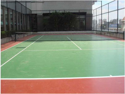 面层有效舒缓冲力,降低对运动员的伤害及疲劳。 能真正做到运动地面结合牢固、不起层、不起泡、运动保护性好、观感佳、寿命长等。该产品已使用于多项国际赛事的场地,获得业内及相关人士的认可。网球场多用材料,国际网球比赛一般都在硬地丙烯酸场地上进行,可以稳定球的转速。