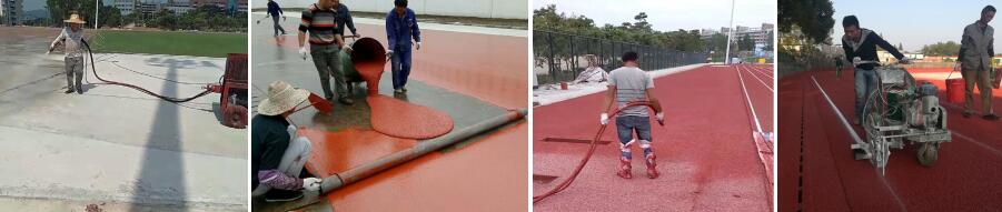 3、然后把专用防滑跑道面漆和1-3mm聚氨酯防滑颗粒按照比例搅拌均匀 ,用喷涂机进行均匀喷涂。